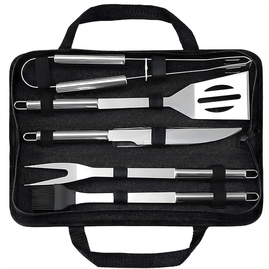 Elevate your BBQ game with this professional-grade 5-piece stainless steel grill tool set, designed specifically for the UAE's outdoor lifestyle. Whether you're grilling on Dubai Marina's rooftop, camping in the desert, or hosting a family gathering, this premium toolkit delivers restaurant-quality results every time.