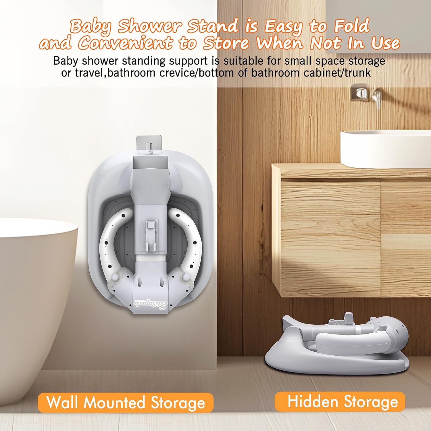 - 【A Game-Changer for Baby Bath Stand】 Say goodbye to bulky baby bathtubs! Baby shower stand collapses in just 3 seconds, transforming from a sturdy baby shower standing support into a slim, portable panel. Slip baby standing bath into a bathroom crevice, under the sink, or even your travel bag. This space-saving is a dream for apartment living and trips, offering all the benefits of a standing bath without sacrificing precious floor space. Modern parents who value practicality and portability will find this baby stand up shower essential irreplaceable.