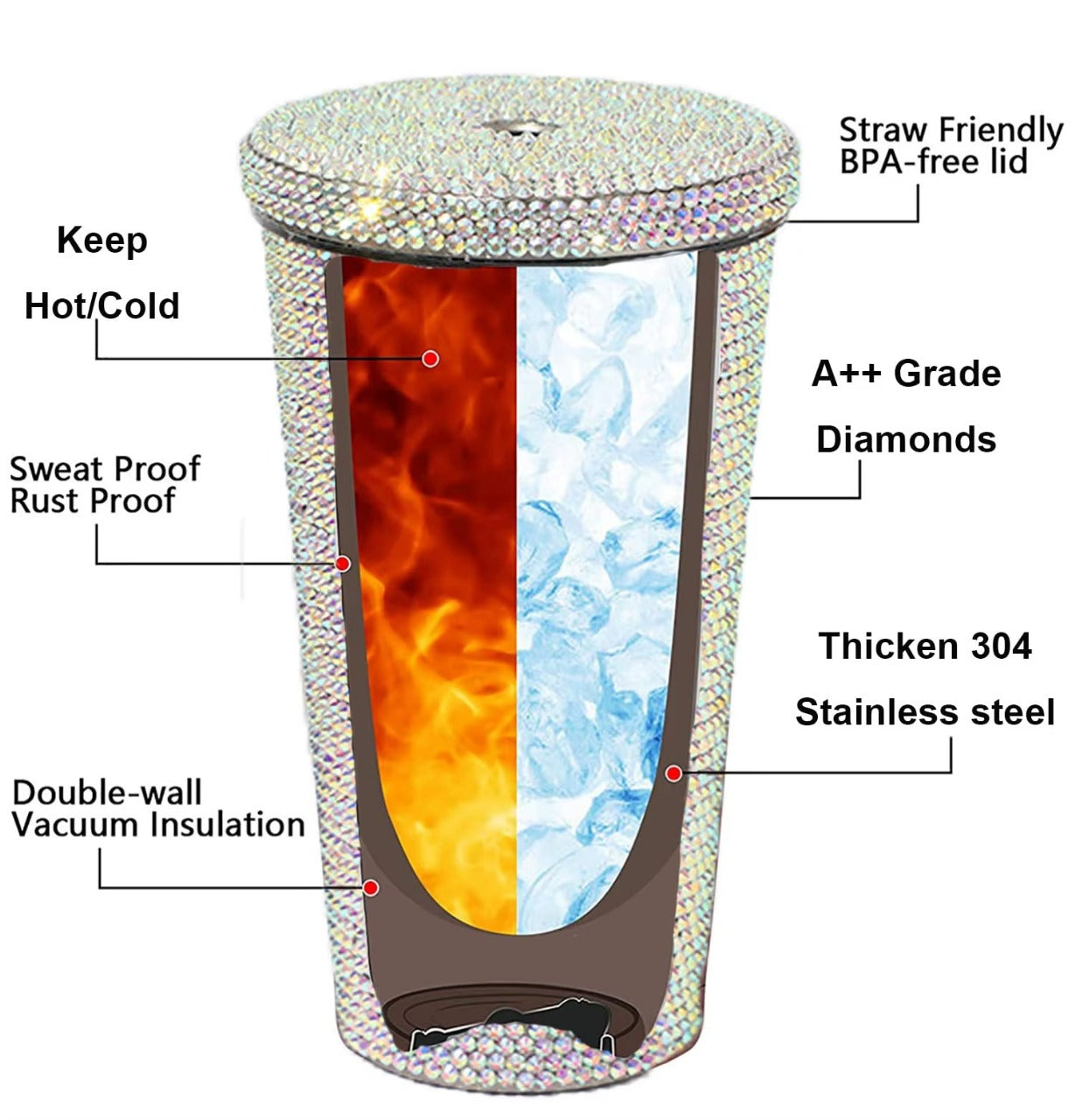 Whether you're treating yourself or searching for a stunning gift for a loved one, this 16oz Diamond Stainless Steel Coffee Mug combines luxury, functionality, and style, making every sip a delightful moment.