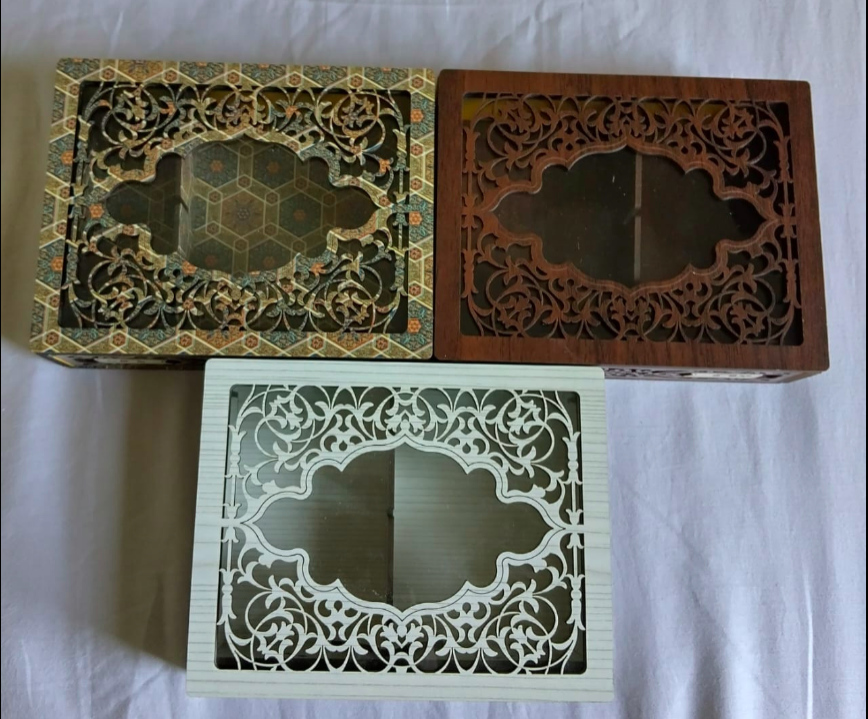 Wooden handmade crafted dry fruit storage Box Multifunctional, Wooden design Decorative Intricate Patterns 2 compartments/Nuts/Snacks/Saffron/Jewlery/spices/Choclates